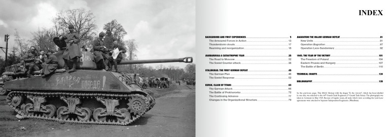 Cet ouvrage donne un aperçu général des opérations militaires depuis l'invasion de l'URSS jusqu'à la défaite du Troisième Reich et se concentre sur l'évolution des unités blindées soviétiques. Les auteurs discutent de l'organisation et de l'équipement de ces unités, des différents modèles de véhicules blindés de combat et de l'évolution de leur conception.