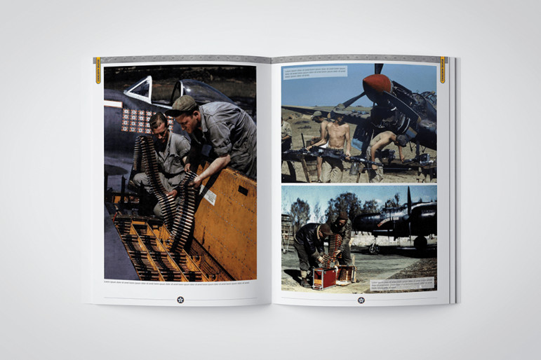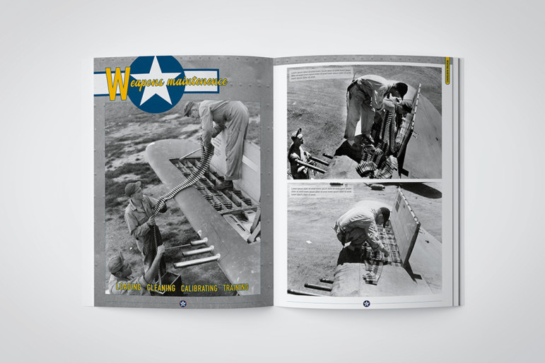 De nombreuses photos et illustrations de ce livre, dont certaines en couleurs, sont suffisamment belles pour être présentées en pleine page. Les images livrent les détails de l'utilisation des armements de l'USAAF jusqu'à leurs écrous et rivets, et les obus à grande vitesse qu'ils ont tirés. Il s'agit d'une étude unique, avec de nombreuses photos jamais publiées auparavant.