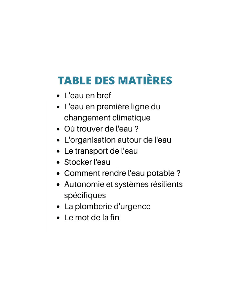 Enfin, apprenez à économiser l'eau dès maintenant pour accroitre votre résilience économique vis-à-vis du système.