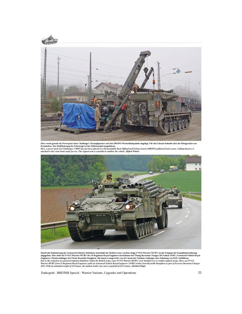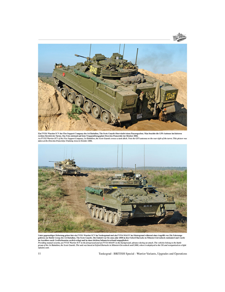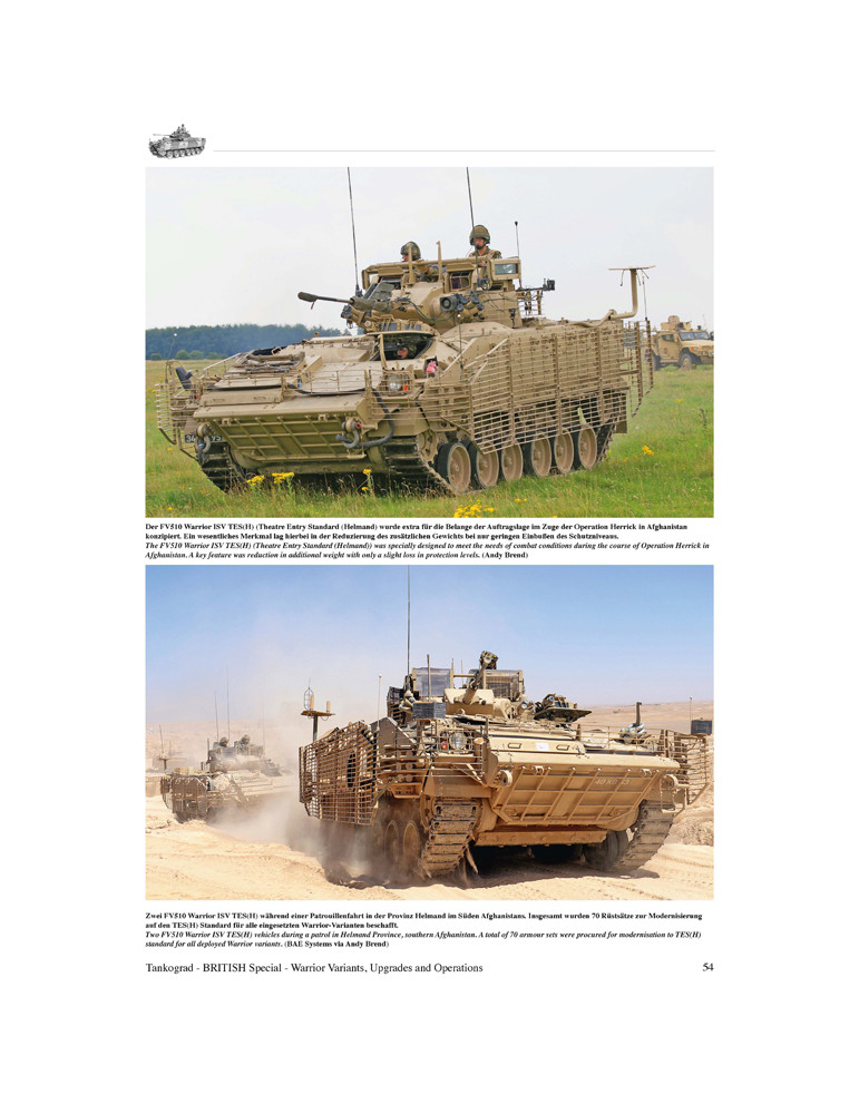 Dès 1967, les premières propositions d'un concept d'exigences pour un nouveau véhicule blindé de combat d'infanterie ont été recueillies au Royaume-Uni. La fin des années 1970 voit le concept prendre forme sous la désignation MCV-80 (Mechanised Combat Vehicle for the 80s) et en 1985 le véhicule reçoit son nom officiel "Warrior". Depuis 1987, le Warrior est l'épine dorsale des unités d'infanterie blindée britannique. Cette publication en double volume, richement illustrée de 250 photos sur un total de 128 pages, décrit le développement, la technologie et le service militaire du Warrior Infantry Section Vehicle (Special 9035) ainsi que les variantes, les opérations et les programmes de mise à niveau de l'ensemble du Warrior. famille de véhicules (Spécial 9036).