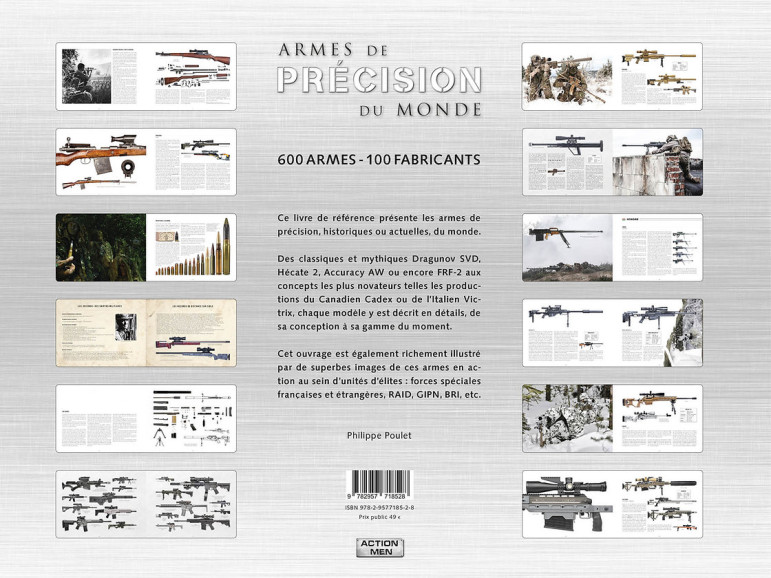Des classiques et mythiques Dragunov SVD, Hécate 2, Accuracy AW ou encore FRF-2 aux concepts les plus novateurs telles les productions du Canadien Cadex ou de l’Italien Victrix, chaque modèle y est décrit en détails, de sa conception à sa gamme du moment.
