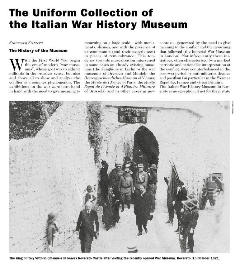 Les collections, ainsi que de nombreuses archives inédites, offrent au lecteur une image authentique de l'organisation de l'armée italienne et de ses uniformes pendant la guerre, ainsi que des lacunes et des progrès ultérieurs de son équipement.