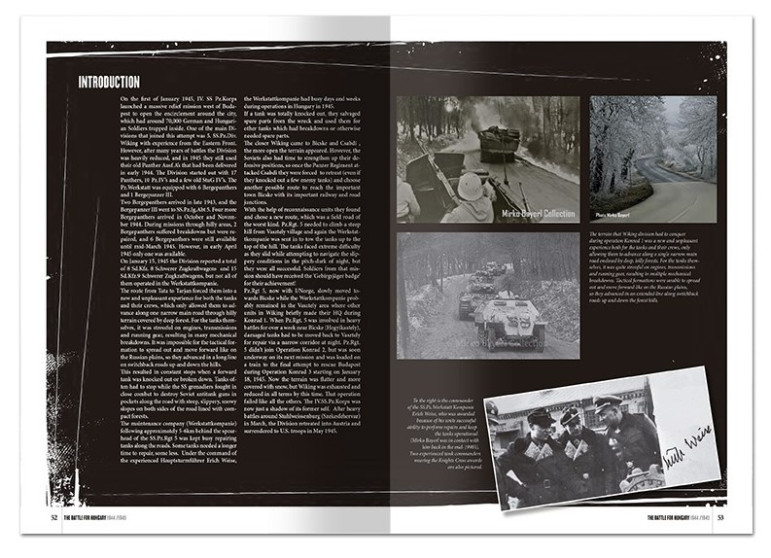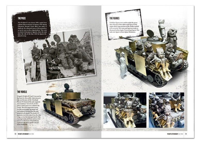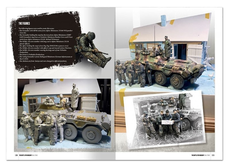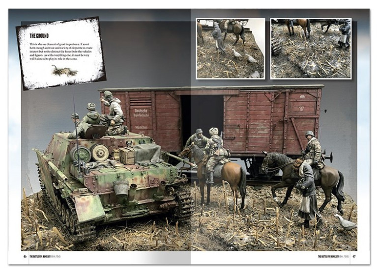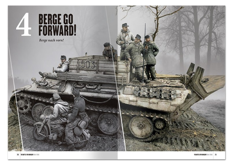 Roger Hurkmans et Mirko Bayerl présentent un nouveau concept avec ce livre, qui combine la modélisation à l'échelle avec l'histoire, en particulier les violents combats qui ont eu lieu en Hongrie pendant les dernières étapes de la Seconde Guerre mondiale. Chaque chapitre décrit un épisode spécifique de cette campagne à l'aide d'un diorama, ce qui permet de transmettre au lecteur l'ambiance, l'atmosphère et les conditions particulières entourant les opérations de manière claire et compréhensible ; le tout étayé par les recherches historiques les plus rigoureuses et accompagné de photographies, de cartes et d'illustrations de référence de haute qualité.