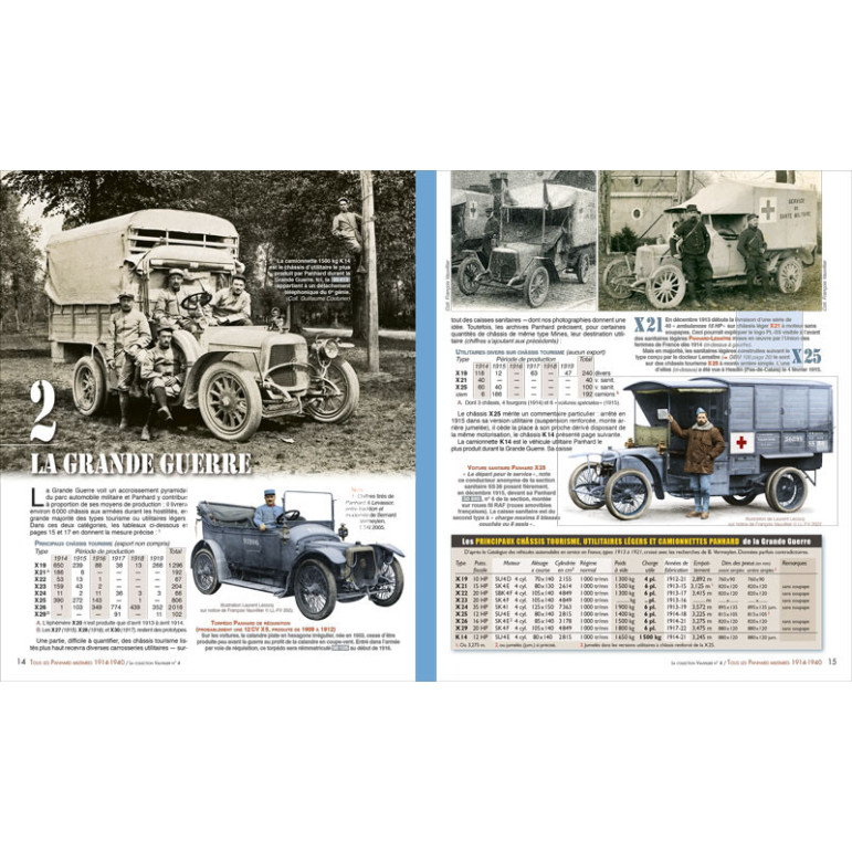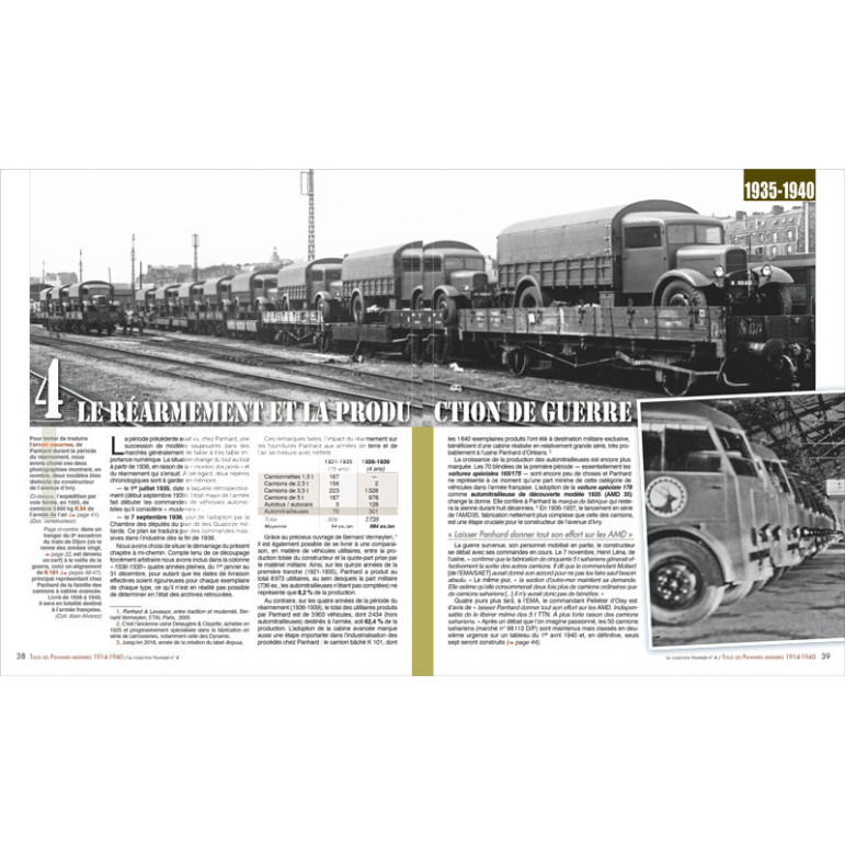 Examinée sous l’angle militaire, la société Panhard est connue pour ses automitrailleuses. Celles-ci, depuis la Panhard-Genty de la campagne du Maroc en 1908 jusqu’au prototype de 1940 à huit roues qui donnera plus tard naissance à l’EBR, sont bien sûr présentes dans ce nouvel ouvrage. Mais c’est surtout un aspect complètement méconnu de la production du constructeur de l’avenue d’Ivry qui est mis en exergue : les camionnettes et camions Panhard ayant servi sous les drapeaux depuis les premières années du XXe siècle jusqu’à l’armistice de juin 1940.