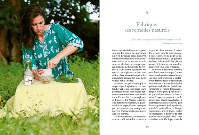 Aurélie Valtat présente dans ce guide les plantes médicinales incontournables, communes, locales et multifonctions à avoir dans sa trousse à pharmacie (achillée millefeuille, aubépine, camomille, lavande, tilleul...). De quoi soigner les maux du quotidien avec des remèdes naturels, que l'on peut fabriquer dans sa cuisine (tisanes, baumes, cataplasmes). Elle nous guide également dans la création d'un "jardin de simples" et la culture en appartement de quelques plantes médicinales. De quoi être plus autonome en cas de petits pépins de santé !
