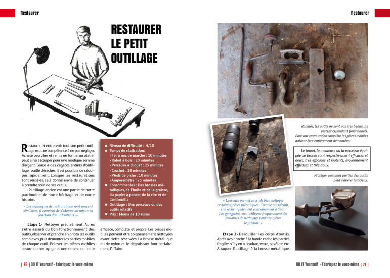 Ce livre est conçu comme une vraie méthode pour (re)faire les choses soi-même. Depuis l’envie de faire en passant par la réflexion et la préparation puis la mise en route du projet, il aborde sous forme d’un pas-à-pas clair et précis la manière de réaliser un projet concret dans l’esprit Do It Yourself.