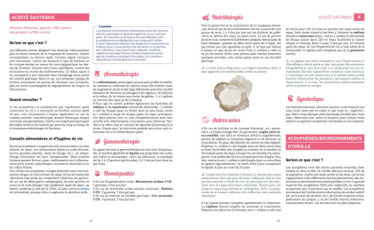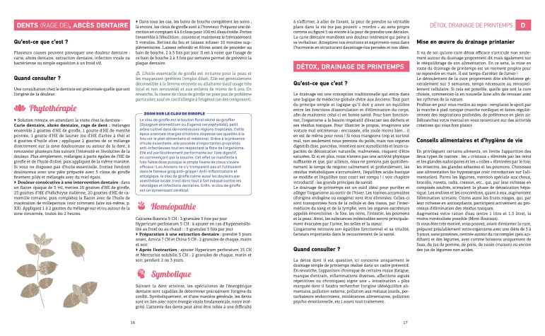 Des encadrés donnant des informations complémentaires : zoom sur une plante ou une technique, "trucs et astuces", approfondissement... Une information précise sur les éventuelles contre-indications ou interactions avec les médicaments allopathiques pour des soins à pratiquer en toute sécurité.