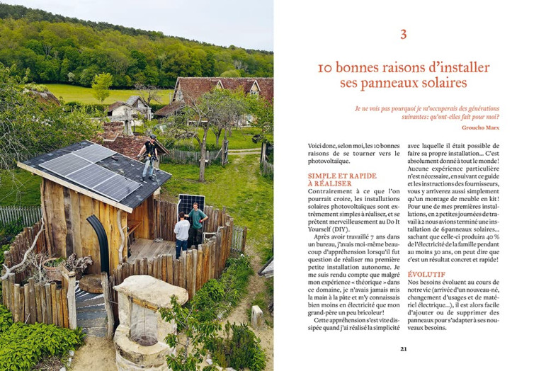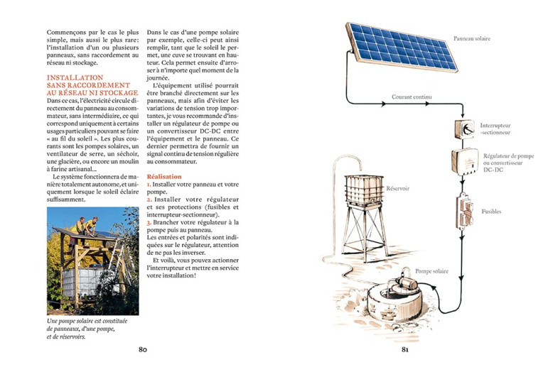 Notions de bases, calcul de l'ensoleillement, installation sur une toiture, sur un camion aménagé ou sur un bateau : l'auteur donne toutes les possibilités que peuvent offrir les panneaux photovoltaïques. Le plus ? Des astuces pour trouver fabricants et fournisseurs, des schémas et des exemples concrets pour que consommer de l'énergie sobrement devienne un moment de partage et de plaisir.