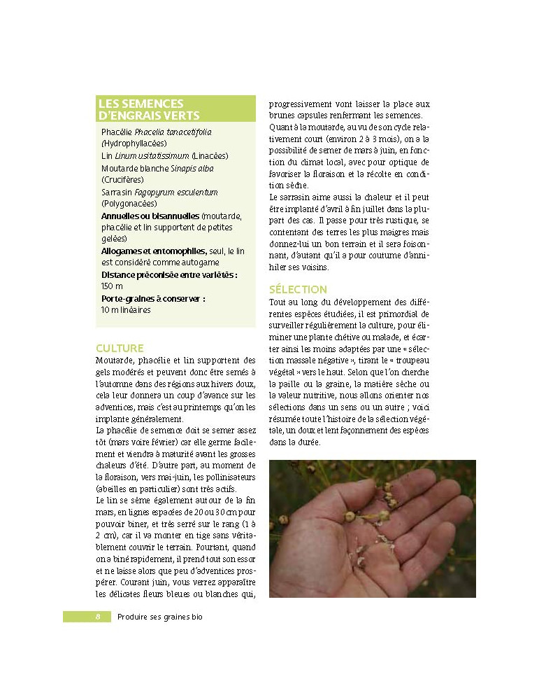 - Plus de 60 fiches très détaillées pour apprendre à sélectionner et à produire ses propres semences de légumes, de plantes aromatiques, de fleurs et, nouveauté 2020, d'engrais verts (légumineuses, céréales, moutarde, phacélie, lin...).