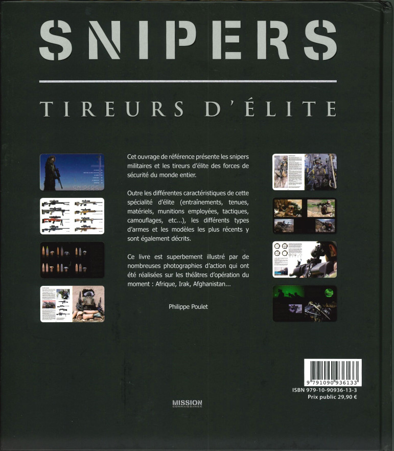Cet ouvrage présente les snipers militaires et les tireurs d’élite des forces de sécurité du monde. Outre les différentes caractéristiques de cette spécialité d’élite (entraînements, tenues, matériels, munitions employées, etc...) les armes les plus récentes sont également décrites en détail.