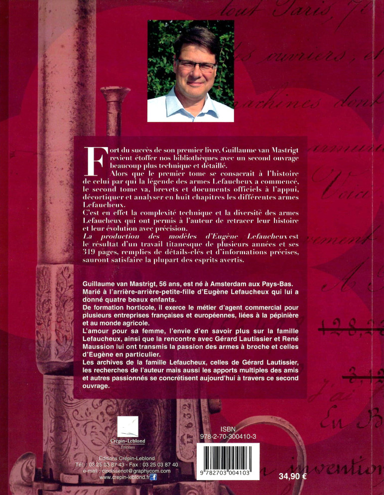 Fort du succès de son premier livre, Guillaume van Mastrigt revient étoffer nos bibliothèques avec un second ouvrage beaucoup plus technique et détaillé. Alors que le premier tome se consacrait à l'histoire de celui par qui la légende des armes Lefaucheux a commencé, le second tome va, brevets et documents officiels à l'appui, décortiquer et analyser en huit chapitres les différentes armes Lefaucheux.