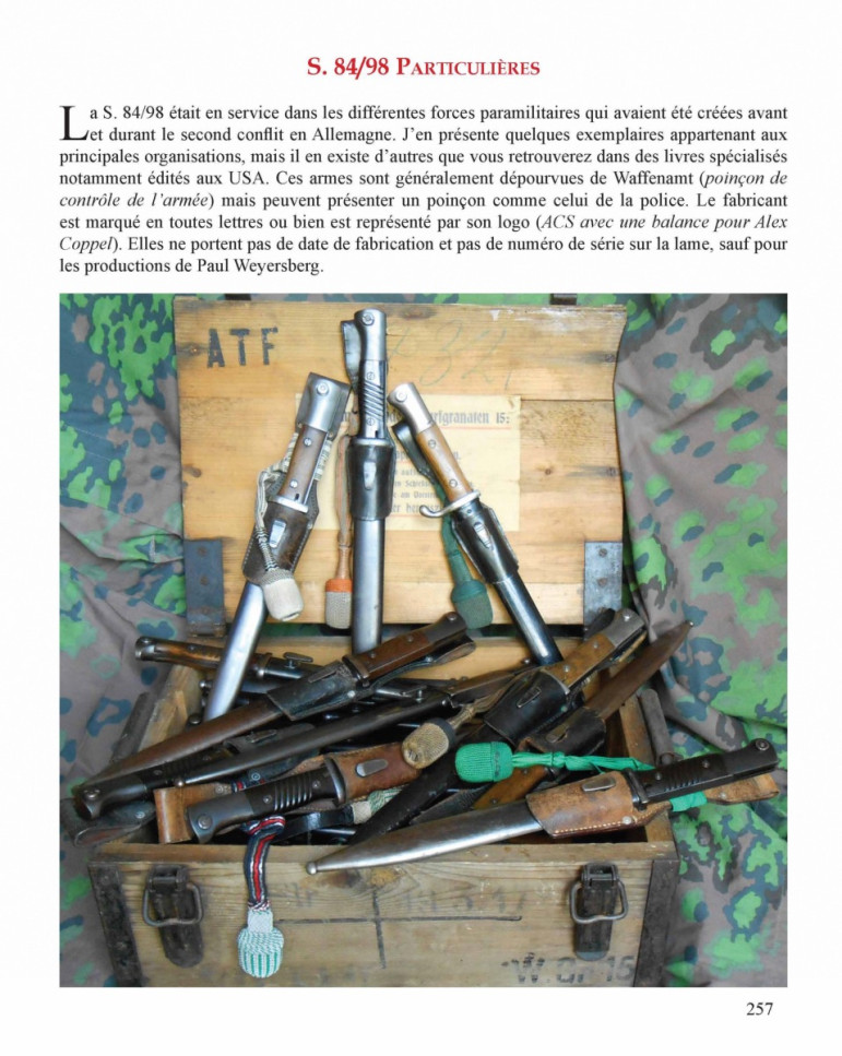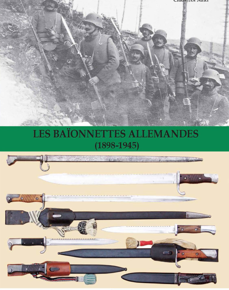 Ce livre qui répertorie les baïonnettes allemandes de la période 1898 à 1945, est le complément de celui des ersatz, publié en juin 2013. Vous y retrouverez l’ensemble des modèles produits en Allemagne et utilisés durant les deux guerres mondiales, sans oublier la période Weimar, à ce jour rarement présentée.