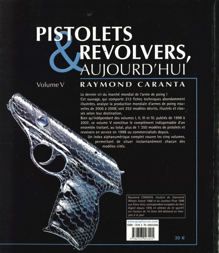 Voici le vol.5 de la collection qui couvre près de 1400 modèles en fabrication en 1999, ou commercialisés depuis cette date à 2007 inclus. Une analyse du marché de 1955 à 2007, l’évolution des systèmes, des prix, toutes les questions qu’on peut se poser à propos des armes récentes sont détaillées dans ce nouveau volume.