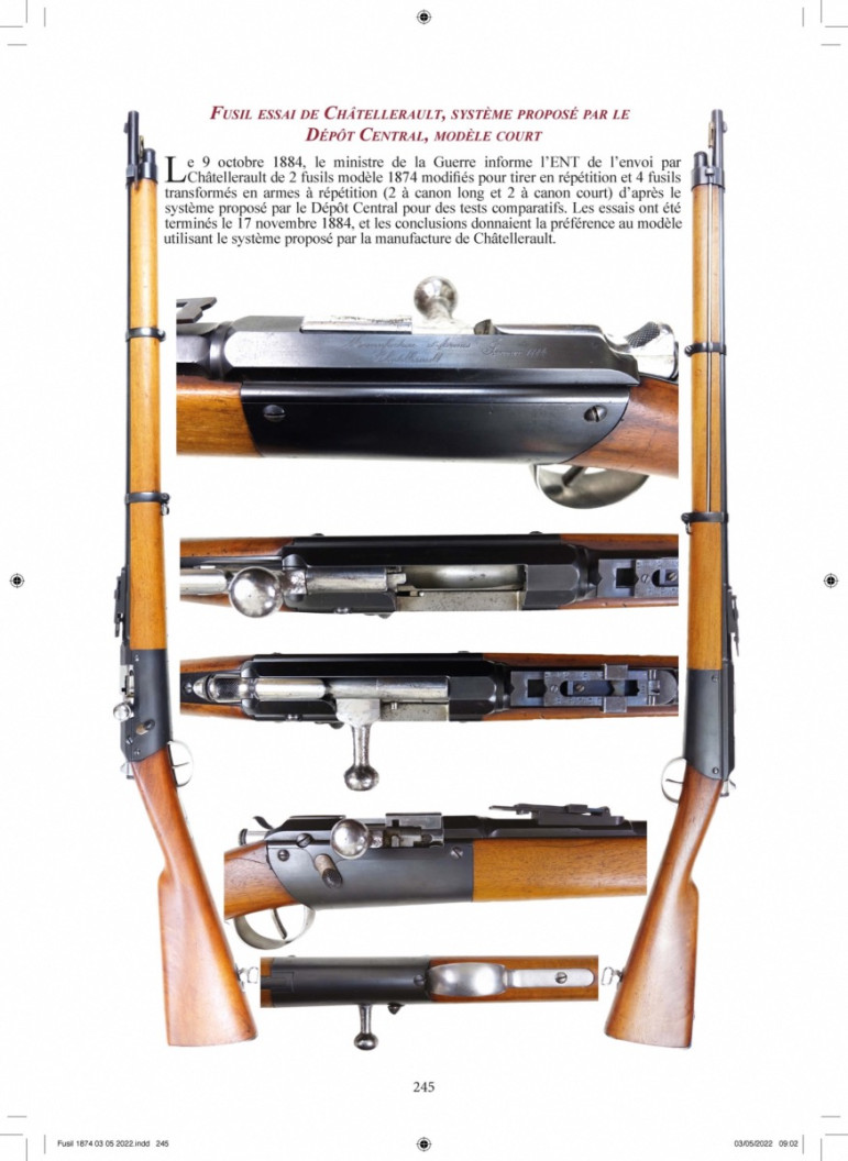 Nous vous invitons à découvrir ce que furent les essais, puis la réalisation du nouveau fusil, ainsi que toutes les tentatives effectuées pour le moderniser avec des dizaines de prototypes de fusils à répétition jusqu’à l’adoption des fusils 1878, 1884 et 1885 également décrits dans ce livre. La plupart d’entre eux n’ont à ce jour jamais été présentés ce qui fait de cet ouvrage la publication la plus complète qui puisse exister sur le sujet.