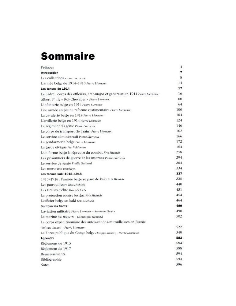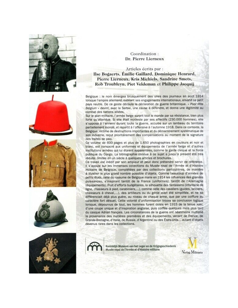 Ce volume de 600 pages et plus de 1.650 photographies en couleurs et noir et blanc, est consacré aux uniformes et équipements de l'armée belge et d'autres institutions armées qui lui étaient apparentées, comme la garde civique et la Force publique du Congo. La bibliographie connue à ce sujet a jusqu'à présent était très réduite, limitée en un siècle à quelques articles et brochures.