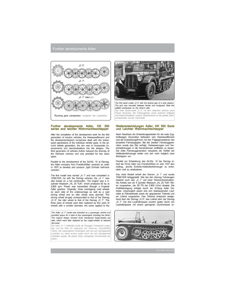 Au fil des ans, les véhicules semi-chenillés allemands non blindés ont toujours été l'un des points forts de la série Nuts & Bolts. Le Dr Nicolaus Hettler avait déjà traité chaque type de ces véhicules à une exception près et avec ce volume 45 il comble le dernier vide en traitant du Sd.Kfz. 10, le semi-chenillé de 1 tonne.
