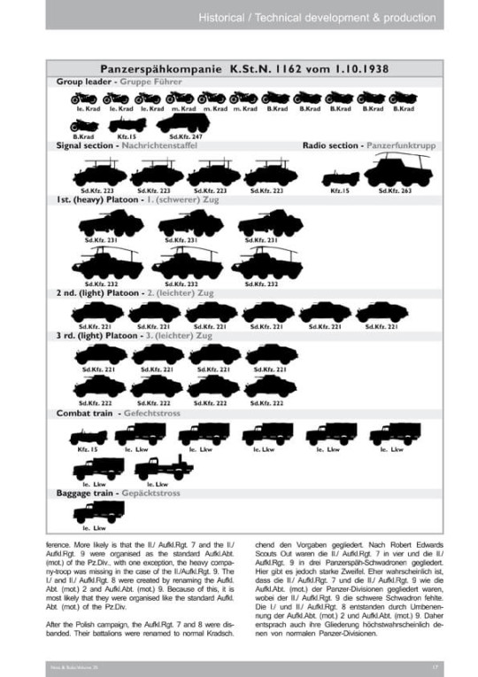Au cours de la guerre une quatrième variante fut introduite, le Sd.Kfz 233 (7,5 cm KwK), et en petit nombre un véhicule de mesure balistique a été construit. Le vaste matériel disponible nous a amenés à la décision de diviser cette famille de véhicules en deux volumes. Ce premier volume traite du Sd.Kfz. 231 et 232 (d'abord appelé Sd.Kfz. 233 et 234).