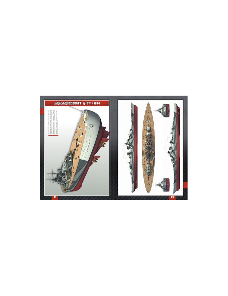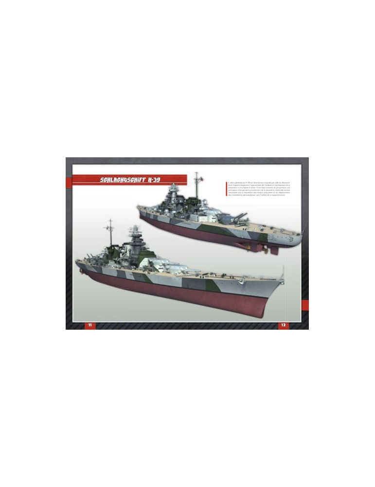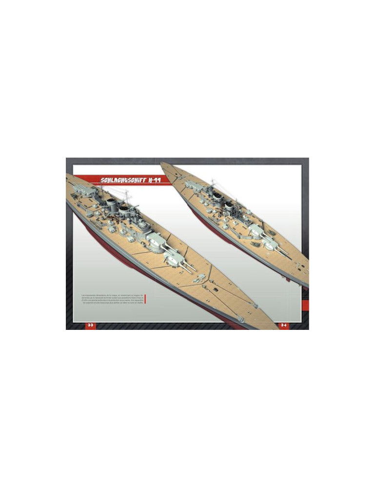 Avec Schlachtschiff H-39 / H-44, les éditions Caraktère proposent le premier volume d’une nouvelle collection de publications dédiées exclusivement à la 3D, pour le plus grand bonheur des maquettistes, illustrateurs et collectionneurs du monde entier. Un texte concis de Pascal Colombier, auteur du livre Plan Z, le fantasme naval allemand, introduit en quelques pages ce grand booklet (format magazine) intégralement consacré à des vues 3D légendées des cuirassés allemands H-39, H-44 et H-44 version 1944. Une mine d’informations visuelles sur les hypothétiques descendants des Scharnhorst, Gneisenau, Bismarck et Tirpitz ! .