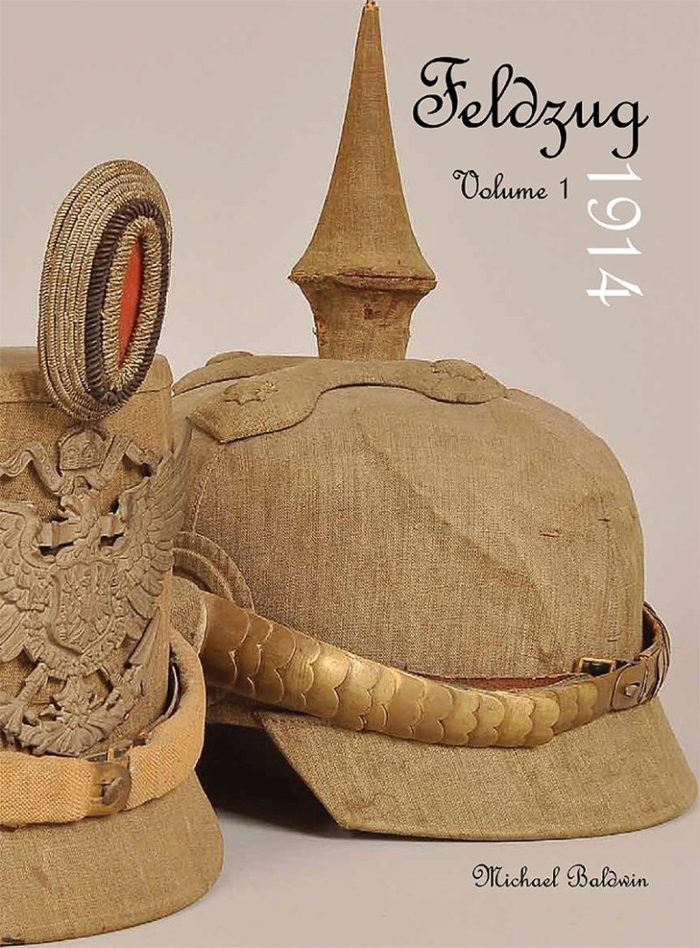 Feldzug 1914 volume 1 par Michael Baldwin est un livre cartonné de 167 pages entièrement illustré avec des photographies haute résolution. Ce travail est le premier volume qui a nécessité cinq ans de travail, mettant l'accent sur la remarquable collection d'uniformes de combat allemands du début de la première guerre mondiale, coiffures et équipements compilés par l'auteur en 40 ans.