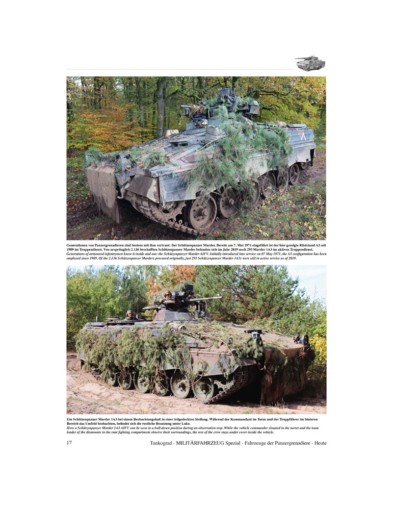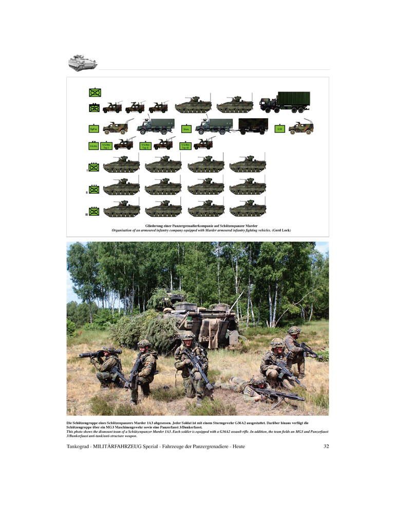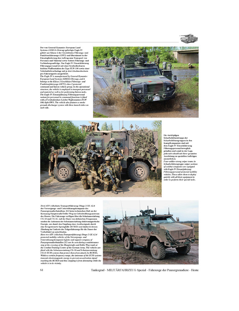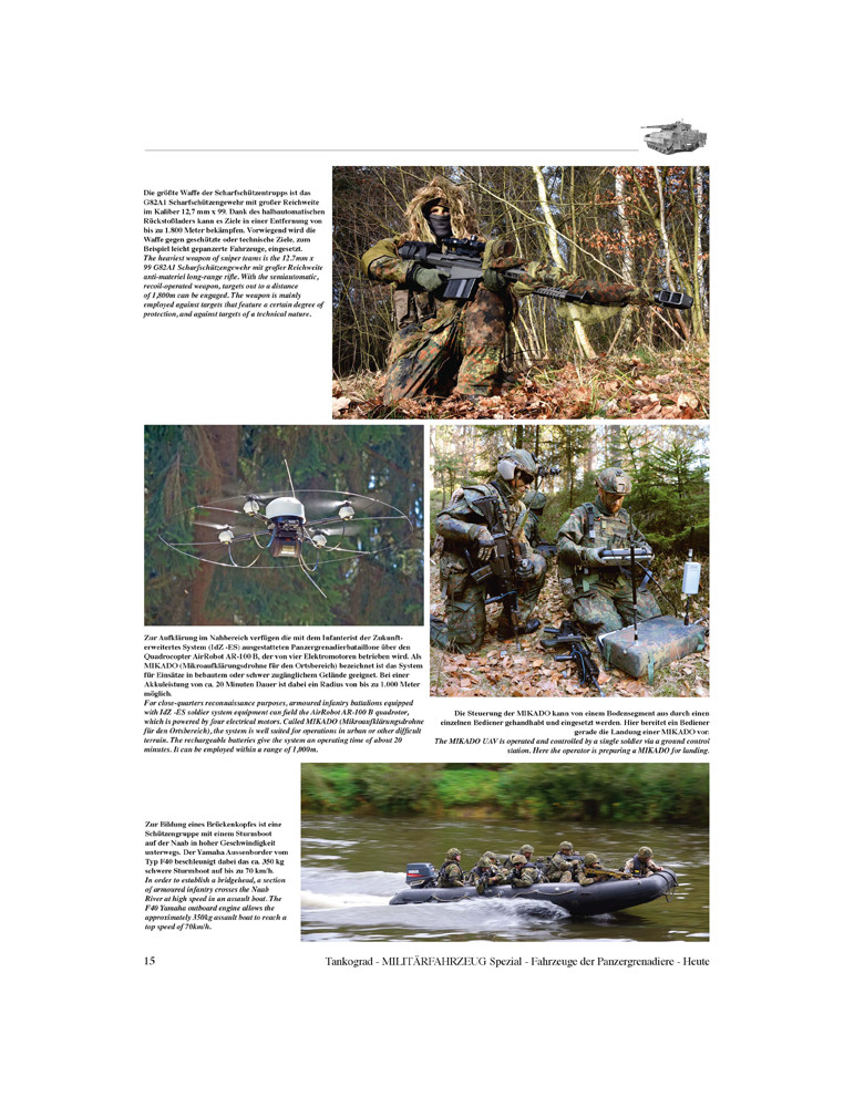 Cette publication raconte l'histoire et l'organisation de la Panzergrenadiertruppe mais montre avant tout ses véhicules de combat et de soutien modernes en action.