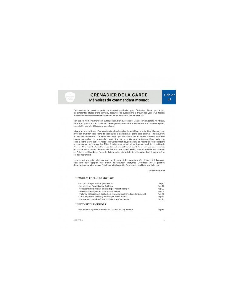 GRENADIER DE LA GARDE, MÉMOIRES DU COMMANDANT MONNOT