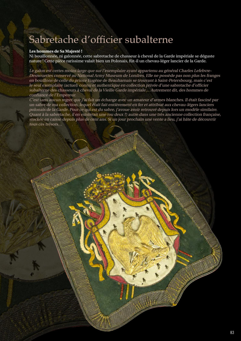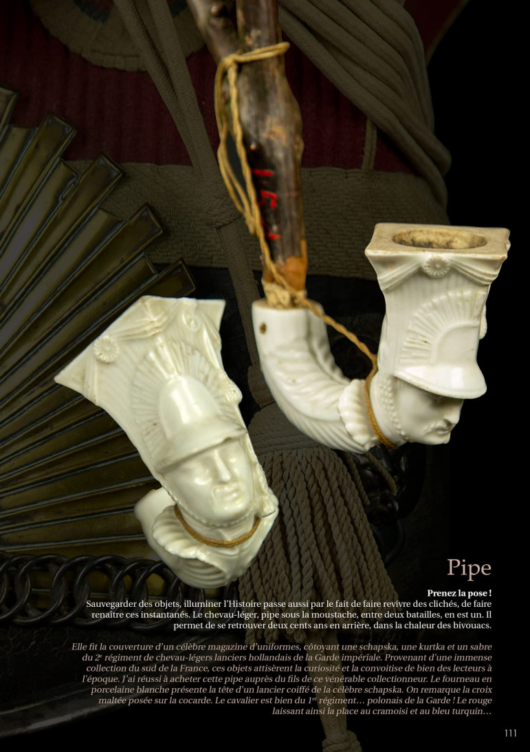 À l'époque napoléonienne on se battait en grande tenue, le camouflage n'existait pas, l'essentiel était d'être beau devant l'ennemi, devant la mort … Cet ouvrage n'a pas pour vocation de présenter un travail didactique, encore moins technique ou purement historique, il reste avant tout un livre destiné au plaisir, et à la découverte. Il est pensé, conçu et réalisé dans le seul but de toucher tous les lecteurs, spécialistes ou non de l'histoire. Il permet de découvrir les objets accompagnant journellement la vie du soldat de Napoléon, que ce soit dans la misère ou dans le faste, dans les plaisirs ou dans leurs contextes de guerre.