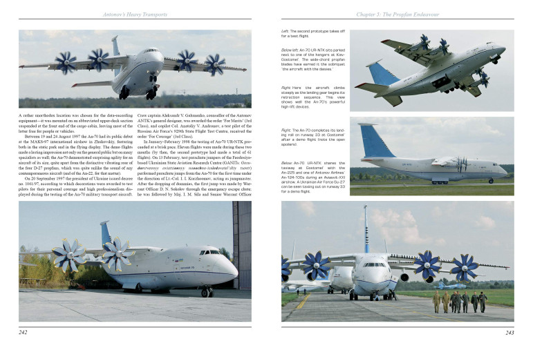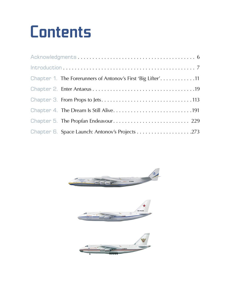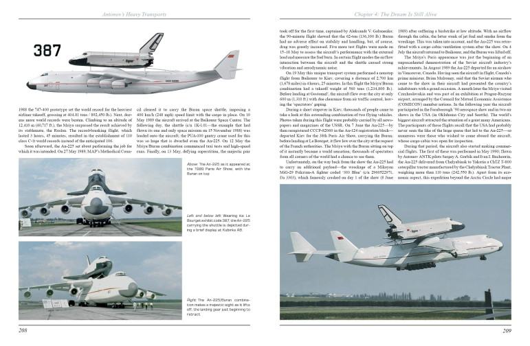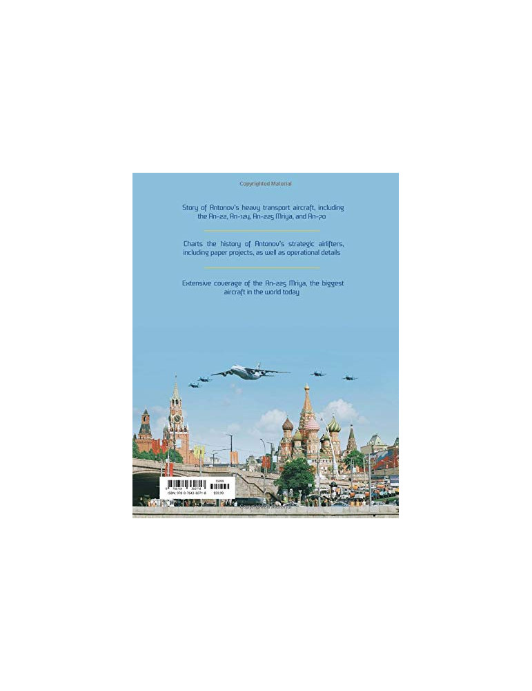 Ce livre retrace l'histoire du développement et de l'utilisation des avions de transport lourds du bureau d'études d'Antonov. À la fin des années 1950, le bureau d'études d'Antonov a commencé à développer le transport militaire lourd An-22, destiné à transporter 50 tonnes. Propulsé par quatre turbopropulseurs de 15 000 ch, il était le transport le plus lourd du monde lors de son premier vol en février 1965. L'An-124 à quatre turbosoufflantes était à nouveau l'avion de transport le plus performant au monde lors de son apparition en 1982, avec une charge utile de 120 tonnes. Il a fait ses preuves dans les opérations militaires et humanitaires et a été acclamé en tant que cargo commercial après 1991 pour le transport d'articles lourds et hors normes. L'unique An-225 "" Mriya "" à six moteurs a été créé pour transporter la navette spatiale Bourane. Malgré la disparition du programme Bourane, l'avion a trouvé une utilisation sur le marché du transport de fret lourd / hors gabarit.