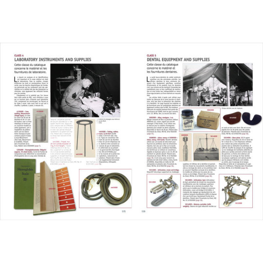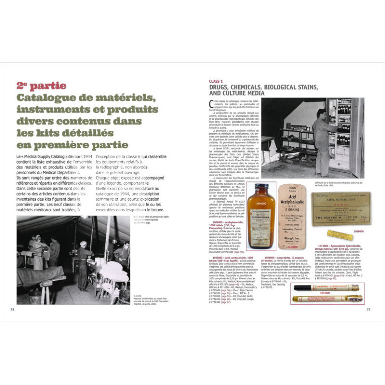 Parmi ces milliers d’objets, le présent ouvrage détaille les ensembles et trousses médicales, chirurgicales, dentaires, orthopédiques, ORL, des soins aux gazés, pour le combat de jungle, etc.