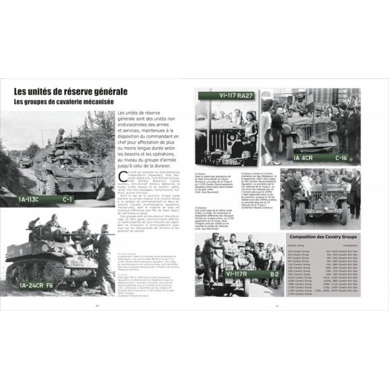 Après une description des types d'engins et de véhicules produits par l'Arsenal de la Démocratie, dont ceux que l'on peut trouver dans les collections et musées, plusieurs chapitres abondamment illustrés de photos d'époque et de dessins explicatifs en couleurs entrent dans le détail de l'organisation des unités, des marques de nationalité et d'unité, des numéros d'immatriculation et du camouflage.