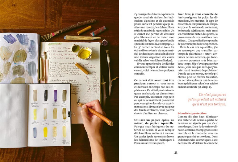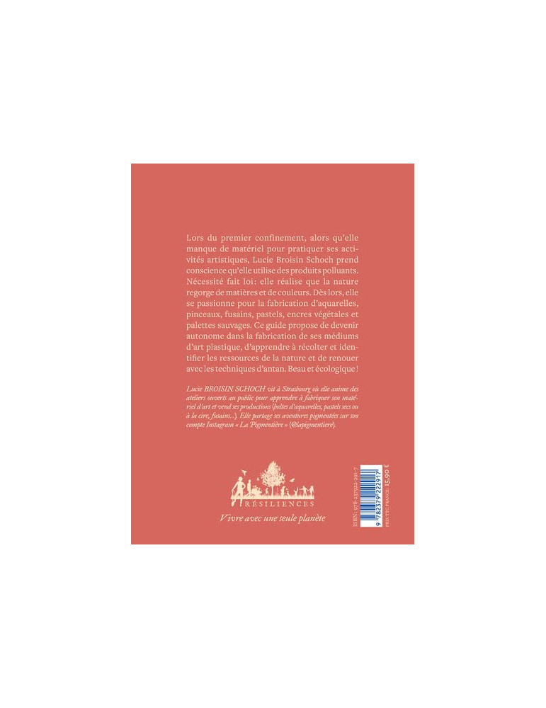Lors du premier confinement, alors qu'elle manque de matériel pour pratiquer ses activités artistiques, Lucie Broisin Schoch prend conscience qu'elle utilise des produits polluants. Nécessité fait loi : elle réalise que la nature regorge de matières et de couleurs. Dès lors elle se passionne pour la fabrication d'aquarelles, pinceaux, fusains, pastels, encres végétales et palettes sauvages. Ce guide propose de devenir autonome dans la fabrication de ses médiums d'arts plastiques, d'apprendre à récolter et identifier les ressources de la nature et de renouer avec les techniques d'antan. Beau et écologique !