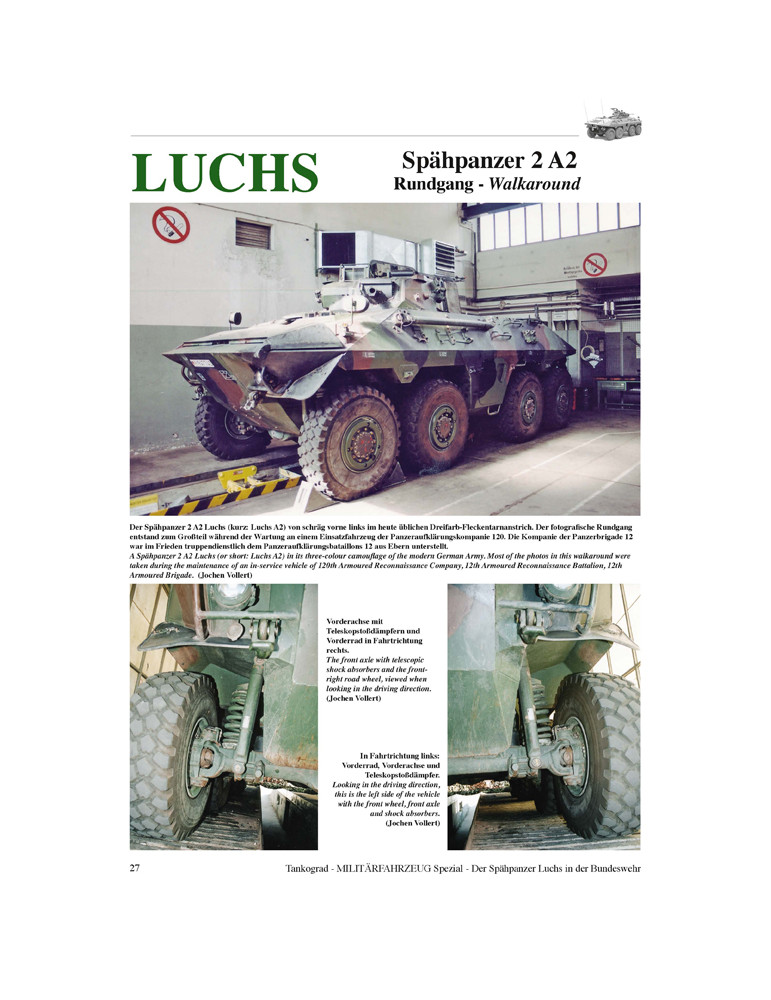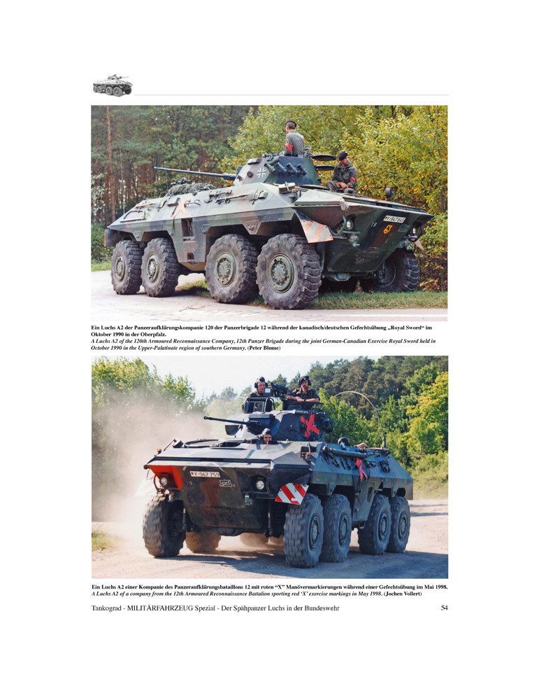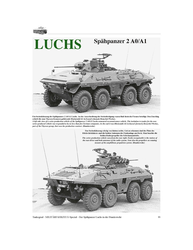 Un total de 408 véhicules de reconnaissance blindés à huit roues Spähpanzer 2 Luchs ont été construits pour l'armée allemande moderne et ils ont été utilisés dans des pelotons de reconnaissance blindés légers au sein des divisions de la Bundeswehr. Au cours de sa période de service de 1975 à 2008, le Luchs était considéré par les unités comme un véhicule exceptionnel, qui s'est fait connaître lors d'exercices et de missions à l'étranger.