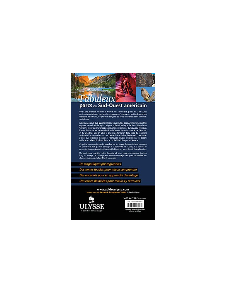 Fabuleux parcs du Sud-Ouest américain, un guide pour planifier votre itinéraire et pour vous accompagner tout au long du voyage. Un ouvrage pour revivre votre séjour ou pour succomber aux charmes des parcs du Sud-Ouest américain.