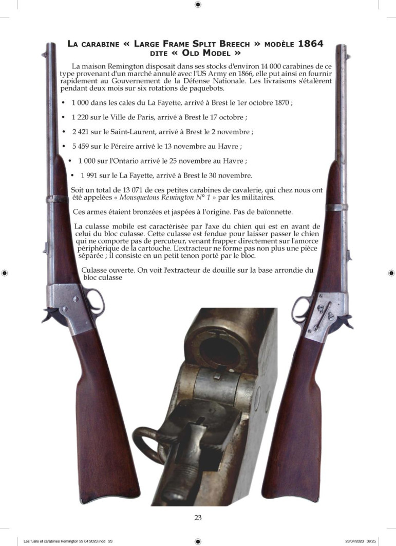 A ce jour, il manquait un ouvrage présentant la synthèse des fusils et carabines Remington achetés aux USA par la France. En effet, je me suis aperçu que beaucoup d’amateurs ne savaient pas, ou mal, identifier les différents types de Remington « Rolling-Block » qui ont équipé nos armées. Le propos de ce livre n’est pas de rentrer dans les détails techniques poussés des célèbres « Rolling-Block » ; il s’agit simplement de faire découvrir au lecteur la genèse de ce système, les différents modèles d’armes utilisés en France et leur historique. Les munitions utilisées sont également détaillées, ainsi que les baïonnettes et sabres-baïonnettes associés aux fusils.
