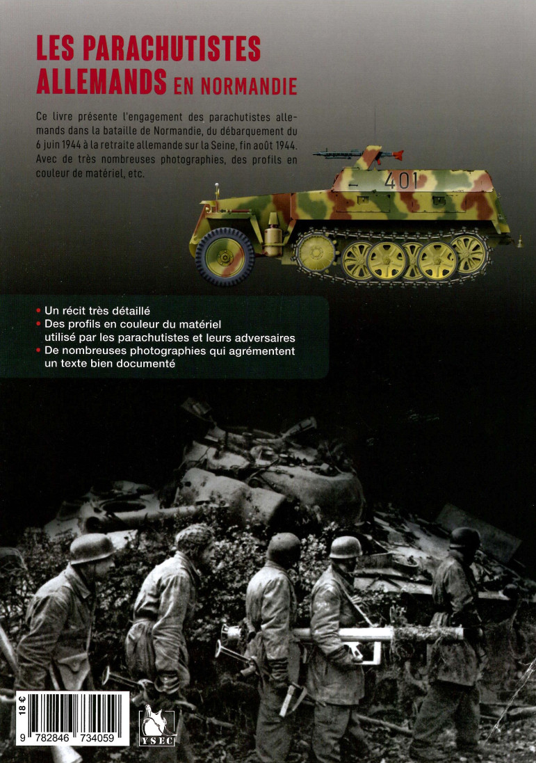 Ce livre présente l’engagement des parachutistes allemands dans la bataille de Normandie. Le récit s’étend du débarquement du 6 juin 1944 à la retraite allemande sur la Seine, fin août. De très nombreuses photographies et des profils de matériel en couleur complètent le récit. Un récit très détaillé. Des profils en couleur du matériel utilisé par les parachutistes et leurs adversaires. De nombreuses photographies qui agrémentent un texte bien documenté