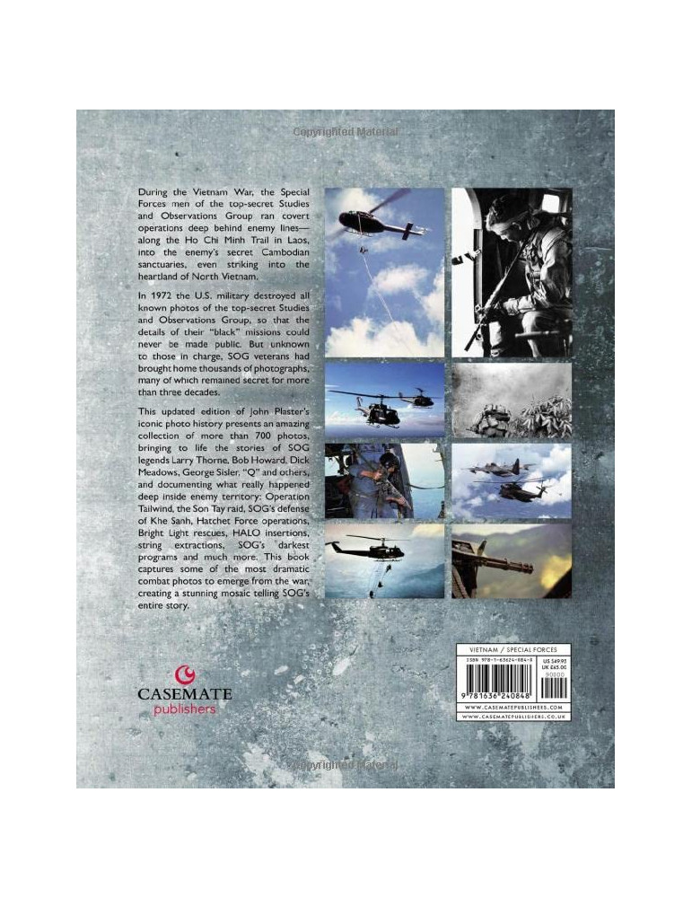 Dans cette nouvelle édition de SOG : A Photo History, plus de 700 photos exceptionnelles donnent vie aux histoires des légendes du SOG tel que Larry Thorne, Bob Howard, Dick Meadows, George Sisler, "Q" et d'autres, et documentent ce qui s'est réellement passé au plus profond du territoire l'ennemi : Opération Tailwind, le raid sur Son Tay, la défense de Khe Sanh par le SOG, les opérations Hatchet Force, les sauvetages Bright Light, les insertions HALO, les extractions par cordes, les programmes les plus sombres de SOG et bien plus encore.