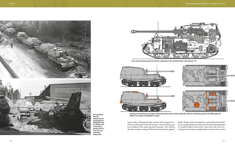 Le concept de Porsche utilisait une nouvelle centrale électrique hybride essence / électricité, mais le contrat du Tiger est finalement allé à Henschel. Grâce à des détails sur les essais de Tiger sur le terrain d'essai de Verskraft, les lecteurs auront un aperçu du processus d'approvisionnement en armement sous le Troisième Reich. La conception coque / châssis du VK 4501 (P) a ensuite été réutilisée pour un grand chasseur de chars nommé d'après le concepteur "Ferdinand". Ces imposants véhicules ont combattu sur plusieurs fronts et ont ensuite été rebaptisés "Elefant".