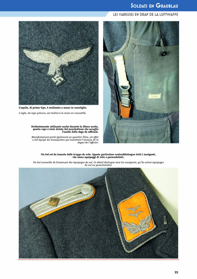 Publié le 16/11/2025 à 02:04 (Date de commande : 02/11/2025)2Certains éléments semblent incorrects ou déplacés. - p. 46 : Ne devrait-on pas écrire « Waffenrock » et non « Tuchrock » ? (Il y a des crochets sur les deux revers et la poche du bas est à soufflet.) - p. 58 : Ne devrait-on pas écrire « Waffenrock » et non « Tuchrock » ? (Il y a des crochets sur les deux revers et la poche du bas est à soufflet.) - p. 70 : Ne devrait-on pas écrire « Tuchrock » et non « Fliegerbluse » ? - La taille des photos montrant les détails des vestes (armoiries nationales, insignes de revers, épaulettes et intérieur) varie d'une veste à l'autre. Il n'y a aucune photo de l'intérieur des vestes ni de tenues de soirée. - Il est peu probable que les médailles aient été initialement fixées à chaque veste. - Il n'y a aucune photo du dos des vestes.
