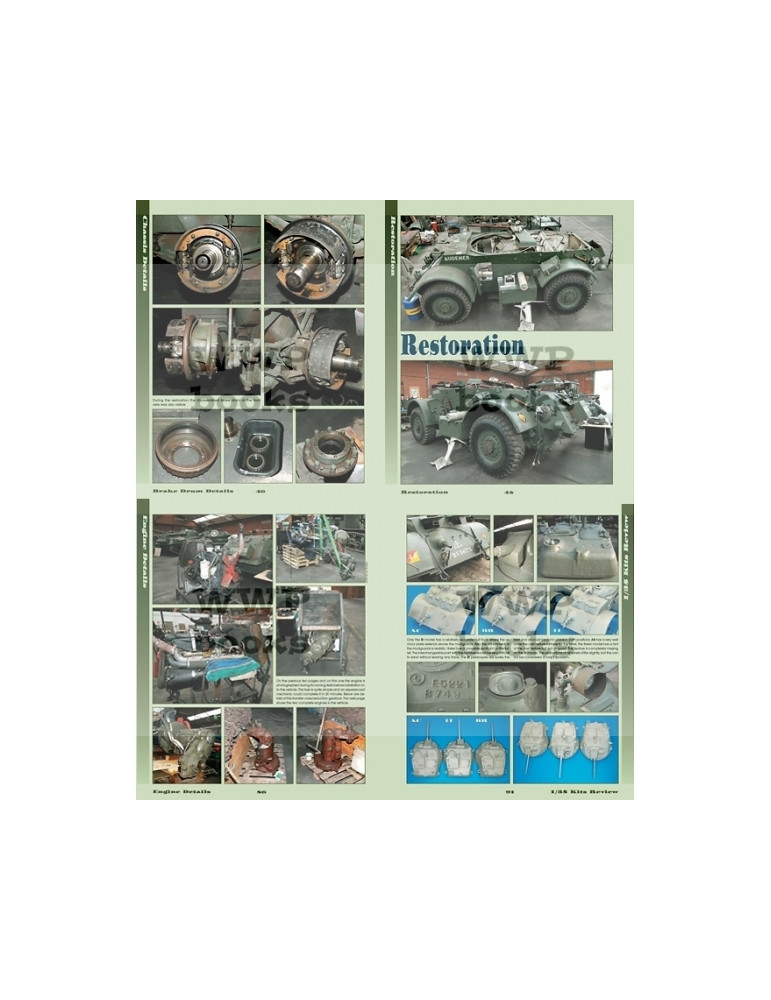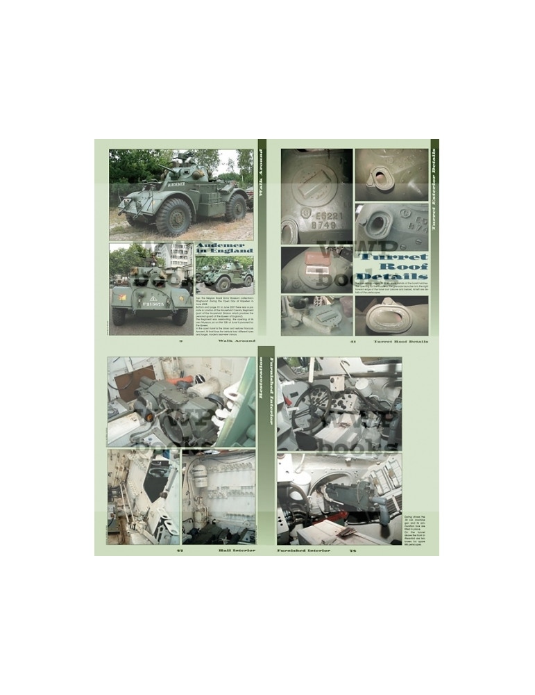 Ce livre offre au lecteur de magnifiques photos couleur en gros plan d'automitrailleuses STAGHOUND conservées par des collectionneurs et au MRA de Bruxelles. Les engins sont littéralement photographiés sous toutes les coutures ! Poste de pilotage, tableau de bord, armement, sièges, caissons, accessoires, train de roulement, outillage, éclairage, etc. Le dernier chapitre présente quelques magnifiques réalisations de modèles réduits.