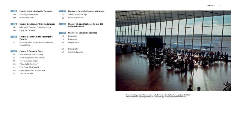 L'histoire de la conception, du développement et de l'utilisation opérationnelle de la Caravelle est présentée en détail dans ce livre, tout comme son utilisation par de nombreuses compagnies aériennes parmi les plus célèbres au monde à l'époque, notamment Air France, SAS, Swissair, Finnair, Royal Jordanian, Austrian Airlines (AUA), United, Indian Airlines et VARIG. Les spécifications techniques de la Caravelle et de ses variantes, ainsi que des photographies d'époque, donnent vie à l'histoire fascinante de cet avion de ligne commercial ancien et influent.
