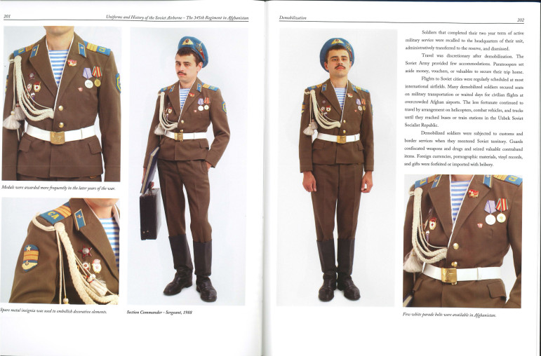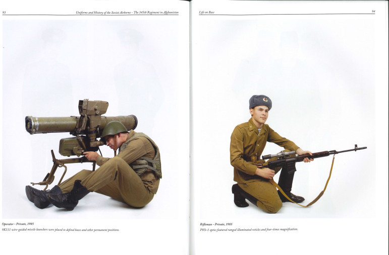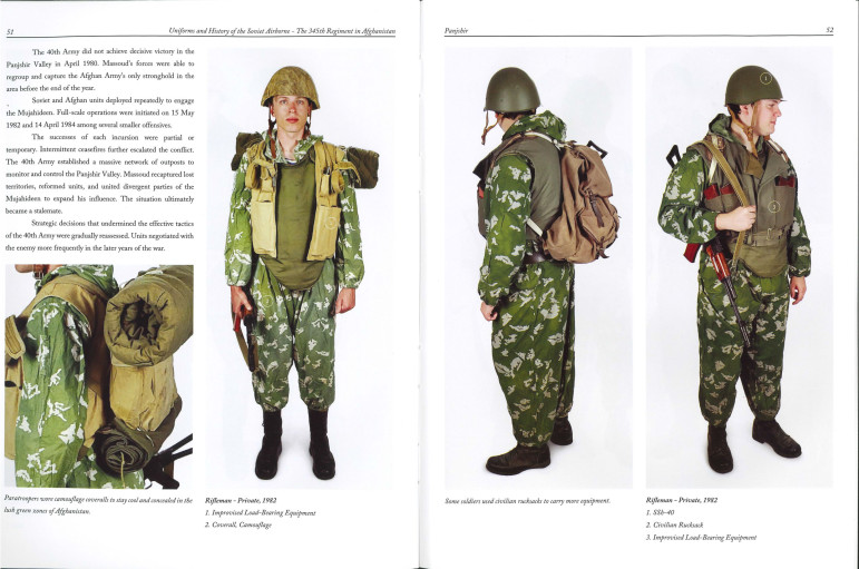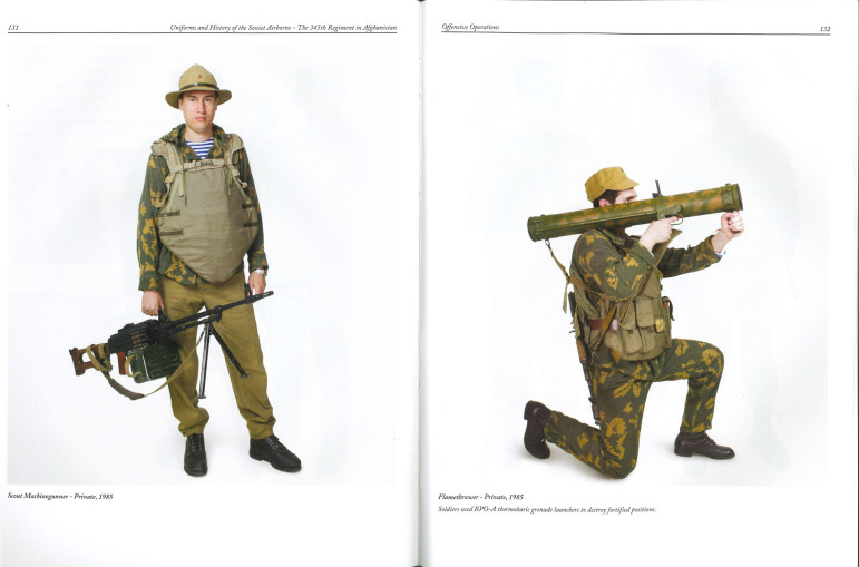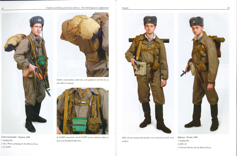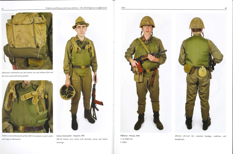 Uniformes et histoire des troupes aéroportées soviétiques - le 345e Régiment en Afghanistan. Ce qui a commencé comme un manuel pour les reconstitueurs est devenu une chronique du début à la fin de la guerre soviéto-afghane. L'objectif central du livre est une collection massive de photographies de haute qualité qui illustre la progression du conflit. Il suit le développement et l'utilisation des uniformes et équipements militaires soviétiques de 1979 à 1989. Des centaines de photos couleur de reconstitutions représentent des soldats soviétiques du 345e régiment.