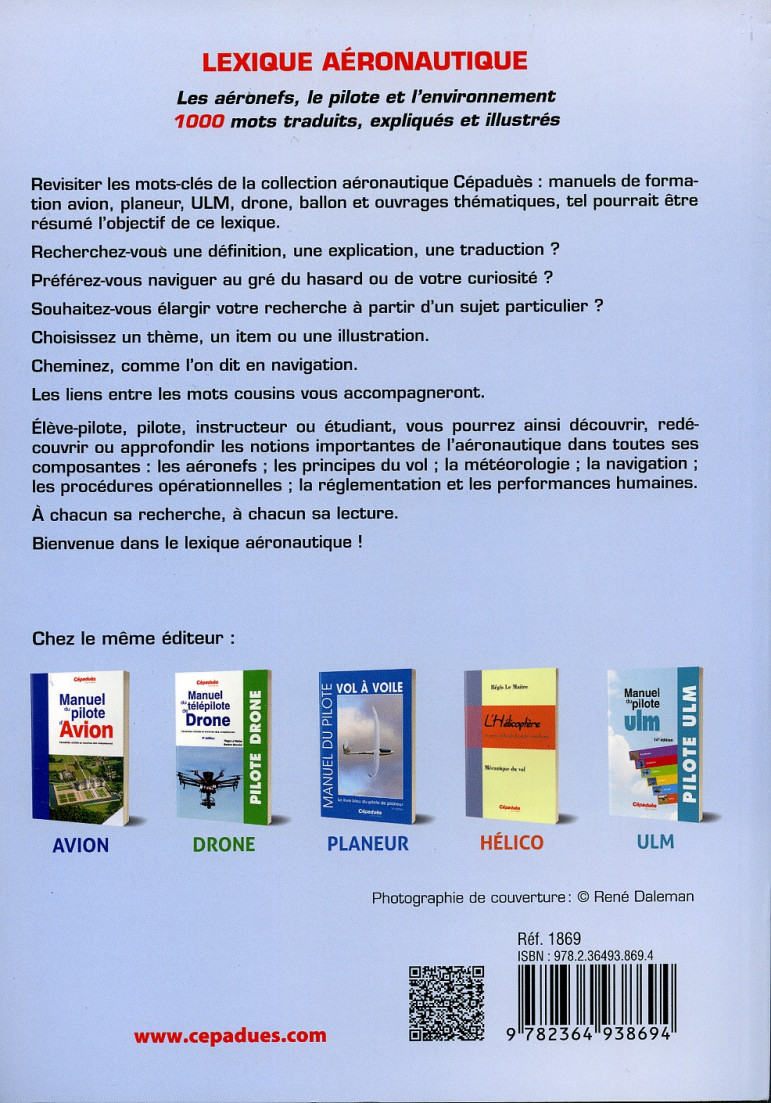 Revisiter les mots-clés de la collection aéronautique Cépaduès, des manuels de formation avion, planeur, ULM, drone, ballon et ouvrages thématiques, tel pourrait être résumé l’objectif de ce lexique.