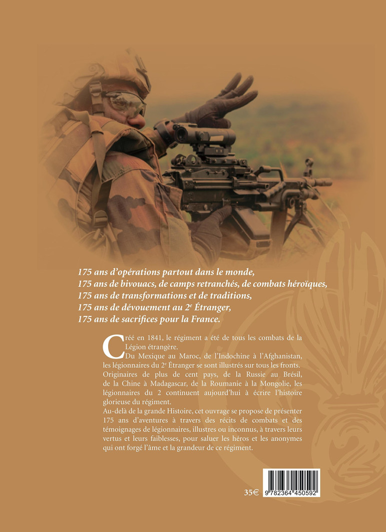 Au-delà de la grande Histoire, cet ouvrage se propose de présenter 175 ans d’aventures à travers des récits de combats et des témoignages de légionnaires, illustres ou inconnus, à travers leurs vertus et leurs faiblesses, pour saluer les héros et les anonymes qui ont forgé l’âme et la grandeur de ce régiment.