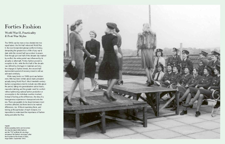 "1940s Fashion: the Definitive Sourcebook" explore l'évolution de la mode durant cette décennie, depuis l'austérité des années de guerre jusqu'au révolutionnaire "New Look" de Dior. Illustré par des photos inédites et des illustrations, cet ouvrage présente les tendances, icônes et designers marquants des années 40, avec une introduction de l'historienne Emmanuelle Dirix.