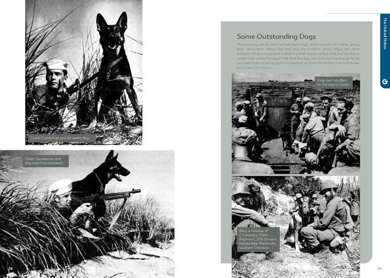 • Raconte les histoires de certains chiens qui ont servi pendant la Seconde Guerre mondiale, y compris les animaux britanniques qui ont reçu la médaille Dickin.
