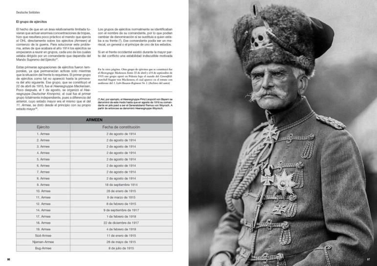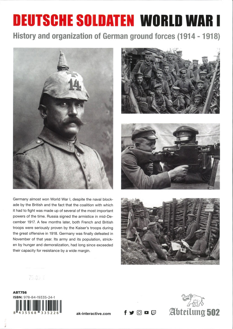 Ce livre se concentre sur l'histoire et l'organisation de l'armée allemande entre 1914 et 1918. Tout au long de ses 384 pages il comprend un grand nombre de photographies inédites de haute qualité, des textes soignés avec des informations détaillées sur les troupes et leurs profils, du matériel de collection et des illustrations.