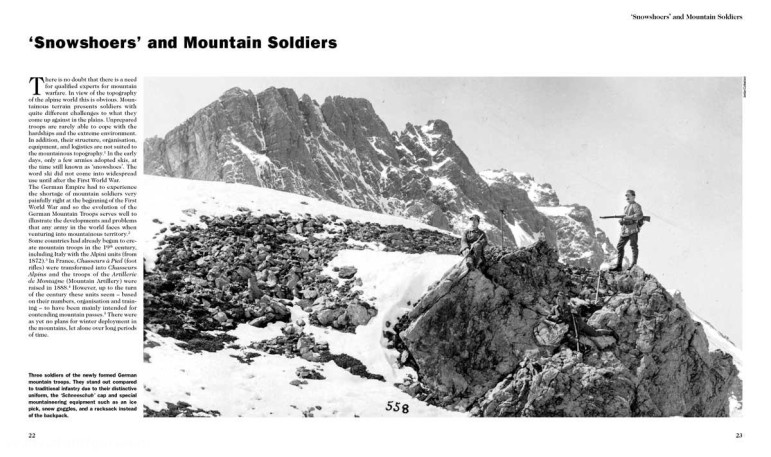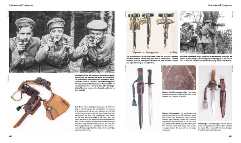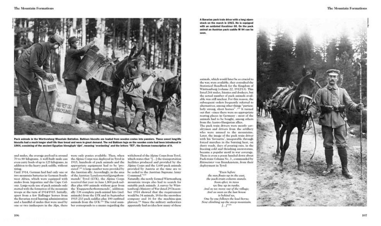 Sur plus de 500 pages, cet ouvrage fondamental fournit également des détails sur l'uniforme et l'équipement des troupes de montagne. Des centaines de photographies d'époque, des cartes et des objets originaux, dont certains n'ont jamais été montrés, provenant des collections du Bavarian Army Museum à Ingolstadt et du Museum of Military History à Rastatt, illustrent le livre. Doté d'annotations et de bibliographies détaillées, le livre ouvre de nombreuses possibilités de recherche. Un appendice documentaire très complet rassemble également une grande quantité d'informations et de données sur différentes formations de montagne et complète ainsi le texte principal. Des détails sur la formation et la composition des unités importantes y sont énumérés.