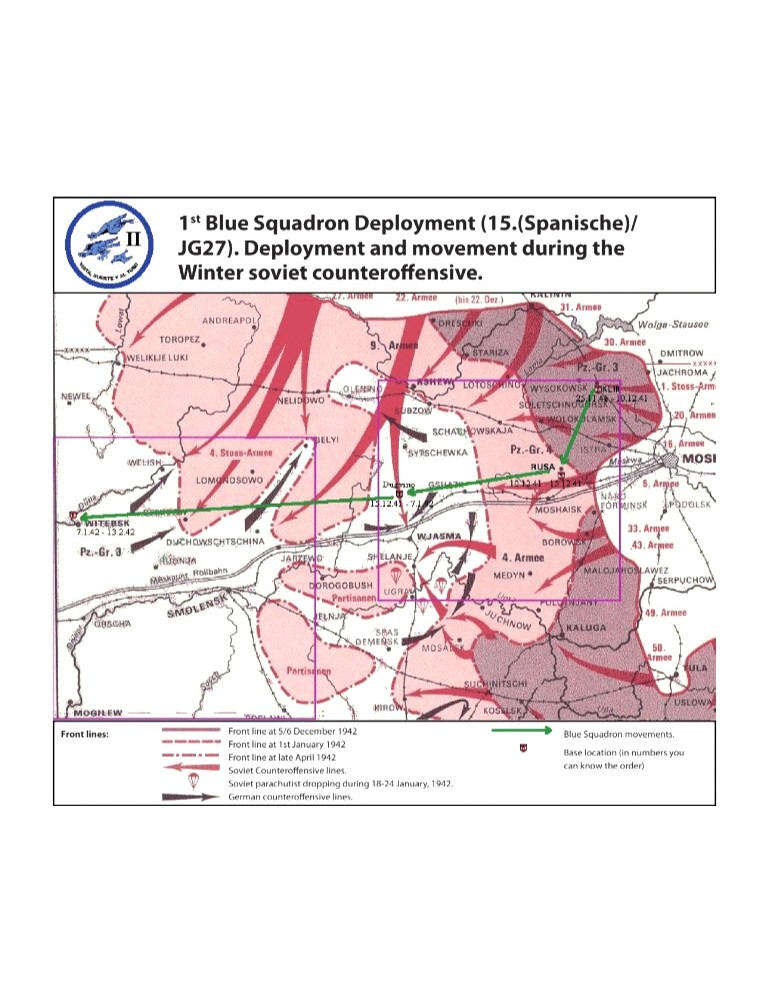 Les escadrons espagnols de la Luftwaffe combattirent sur le front de l'Est de 1941 à 1944, menant 4944 missions de combat et abattant 164 avions soviétiques. Ils comptaient 13 as parmi leurs pilotes.