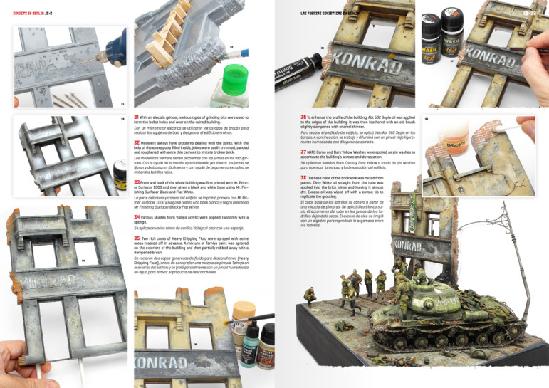 Ce livre de modélisme contient des dioramas et des véhicules superbement conçus pour raconter l'histoire de la chute de Berlin. Une multitude de références et d'histoires derrière les œuvres incitent chacun des auteurs à raconter une histoire avec chaque pièce. Non seulement le processus de planification, de peinture et de construction est expliqué étape par étape, mais aussi les clés pour obtenir un excellent niveau de vieillissement avec différents effets : boue, éclaboussures, gouttes, éclats, poussière, saleté, etc.