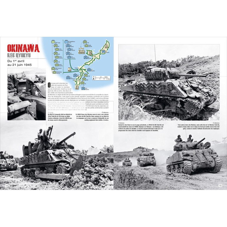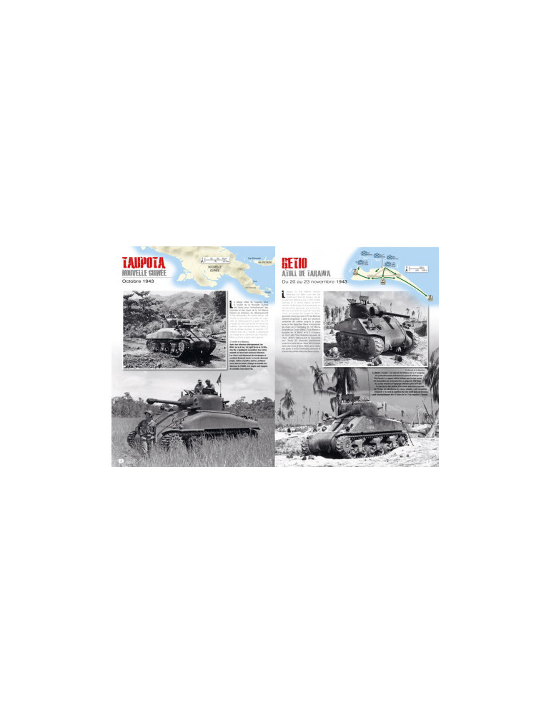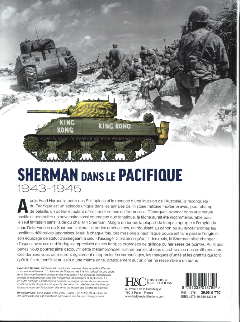 Après Pearl Harbor, la perte des Philippines et la menace d’une invasion de l’Australie, la reconquête du Pacifique est un épisode unique dans les annales de l’histoire militaire moderne avec, pour champ de bataille, un océan et autant d’îles transformées en forteresses. Débarquer, avancer dans une nature hostile et combattre un adversaire aussi courageux que fanatique, la tâche aurait été incommensurable pour le seul fantassin sans l’aide du char M4 Sherman. Malgré un terrain la plupart du temps impropre à l’emploi du char, l’intervention du Sherman limitera les pertes américaines, en réduisant au canon ou au lance-flammes les positions défensives japonaises.
