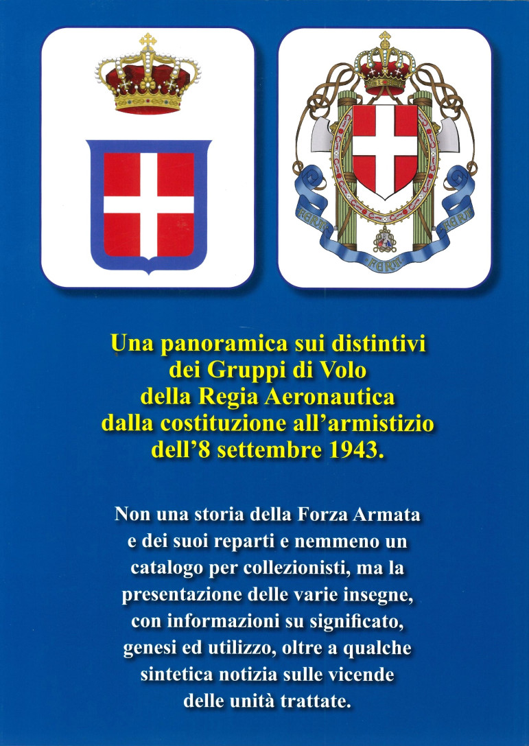 Ce second volume de la série traite des insignes qui identifiaient les groupes de chasse, de bombardement et de transport de l'armée de l'air Royale Italienne (Regia Aeronautica). Ces insignes étaient en métal pour la veste d'uniforme, en tissu ou en cuir pour les combinaisons de vol mais aussi peints sur les aéronefs, les bâtiments, des panneaux ou d'autres supports ou bien encore imprimés sur des documents papier. La période étudiée se termine avec l'armistice du 8 septembre 1943, même si la Regia Aeronautica a continué d'exister jusqu'à la proclamation des résultats du référendum institutionnel du 2 juin 1946. Par ailleurs, cette période a été choisie pour ne traiter, en principe, que des sujets de dont la documentation disponible est considérée comme fiable et se rapportant à la période considérée, à l'exclusion des insignes référencés uniquement par des productions récentes. Malgré les limites que nous nous sommes fixées et sans prétendre à une couverture absolue du sujet, les auteurs sont néanmoins confiants de pouvoir en proposer un aperçu large et documenté, grâce également au fait d'avoir pu consulter le matériel héraldique conservé au bureau historique de l'état-major général de l'armée de l'air italienne.